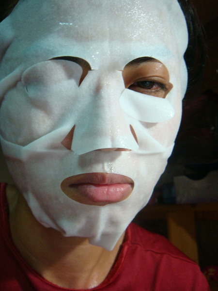 呵呵~乳液狀的面膜,加上菱形壓紋緊緊包住臉拉提